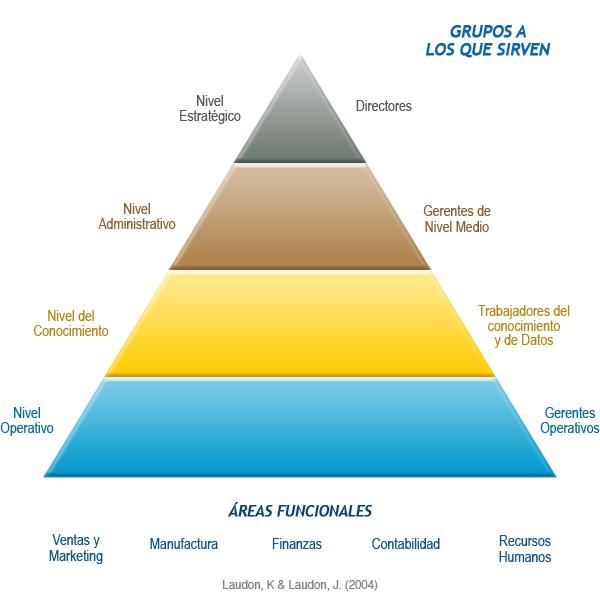 Según el libro Sistemas de Información Gerencial [Laudon K C. y J. P. Laudon: Sistemas de Información Gerencial. Organización y Tecnología de la Empresa Conectada en Red; Editorial: Prentice Hall (2002)] , los sistemas están divididos en distintos niveles (Figura 1) según a los grupos de usuarios a los que sirven.